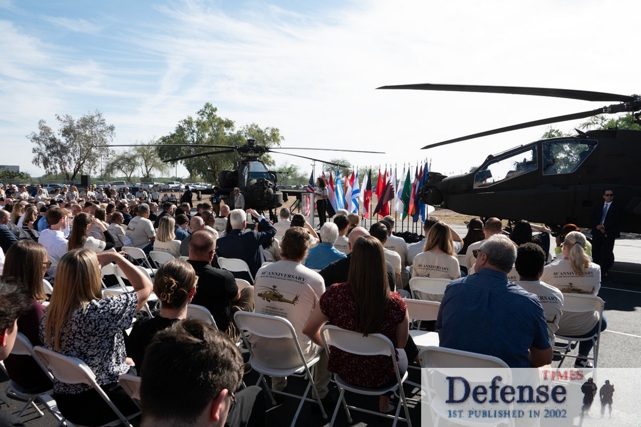 º¸À×(NYSE: BA)°ú ¾Ö¸®Á¶³ª ¹æÀ§»ê¾÷ °ü°èÀÚµéÀº 11¿ù 13ÀÏ(ÇöÁö½Ã°¢) º¸À× ¸Þ»ç ½Ã¼³¿¡¼ ¾ÆÆÄÄ¡ °³¹ß 50ÁÖ³âÀ» ±â³äÇß´Ù. ¾ÆÆÄÄ¡ÀÇ ½ÃÁ¦±âÀÎ YAH-64´Â 1975³â 9¿ù 30ÀÏ ¹Ì±¹ ͏®Æ÷´Ï¾ÆÁÖ ÆÈ·Î¸¶ °øÇ׿¡¼ ù ºñÇàÀ» ¼öÇàÇÑ µÚ, º¸À×Àº Áö³ ¼ö½Ê ³â µ¿¾È AH-64E·Î À̾îÁö´Â ÃÖ½ÅÇü °ø°ÝÇï±âÀÇ °³¹ß¡¤»ý»êÀ» Áö¼ÓÇØ¿Ô´Ù.