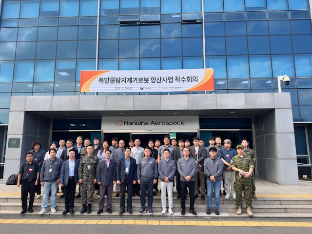 ¹æÀ§»ç¾÷ûÀº 2020³âºÎÅÍ ¡®Æø¹ß¹° ŽÁö¡¤Á¦°Å ·Îº¿¡¯ °³¹ßÀ» ÃßÁøÇØ 2023³â 8¿ù ÀüÅõ¿ë ÀûÇÕ ÆÇÁ¤À» ¹Þ¾ÒÀ¸¸ç, ¿ì¸® ±º Ç¥ÁØÇ°¸ñ ÁöÁ¤°úÁ¤À» °ÅÃÄ, 2025³â 9¿ù 5ÀÏ ÇÑÈ¿¡¾î·Î½ºÆäÀ̽º(ÁÖ)¿Í ¾à 2,700¾ï ¿ø ±Ô¸ðÀÇ ¾ç»ê°è¾àÀ» ü°áÇß´Ù. Æø¹ß¹° ŽÁö¡¤Á¦°Å ·Îº¿Àº 2025³â ¸»ºÎÅÍ °¢ ±º¿¡ ¼øÂ÷ÀûÀ¸·Î ÀεµµÇ¾î 2027³â ¸»±îÁö Àü·Âȸ¦ ¿Ï·áÇÒ ¿¹Á¤ÀÌ´Ù.